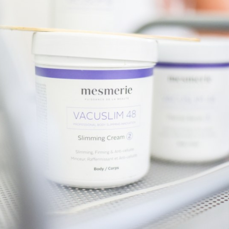 Vacuslim 48 združuje moč aktivnih sestavin in vakuumskega učinka, ki spodbujata razgradnjo maščob in izboljšujeta prekrvavitev. Med tretmajem se uporablja dve specializirani formuli. Thermo slimming serum, ki aktivira topljenje maščob, izboljša cirkulacijo in pospeši izločanje toksinov. Slimming & firming kremo, ki učvrsti kožo, zmanjša videz celulita in izboljša tonus kože